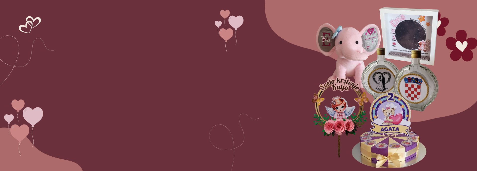Personalizirane dekoracije za nezaboravne trenutke. Rođendanske dekoracije, toperi za torte, torte od kartona, pozivnice, personalizirani pokloni i još mnogo toga